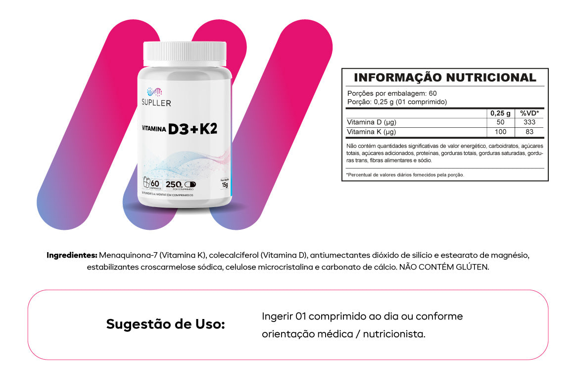 - A Vitamina K2 (Menaquinona-7) é o "GPS". Ela "pega" o cálcio absorvido e o guia ativamente para onde ele deve ir (ossos e dentes), enquanto promove a elasticidade dos vasos.